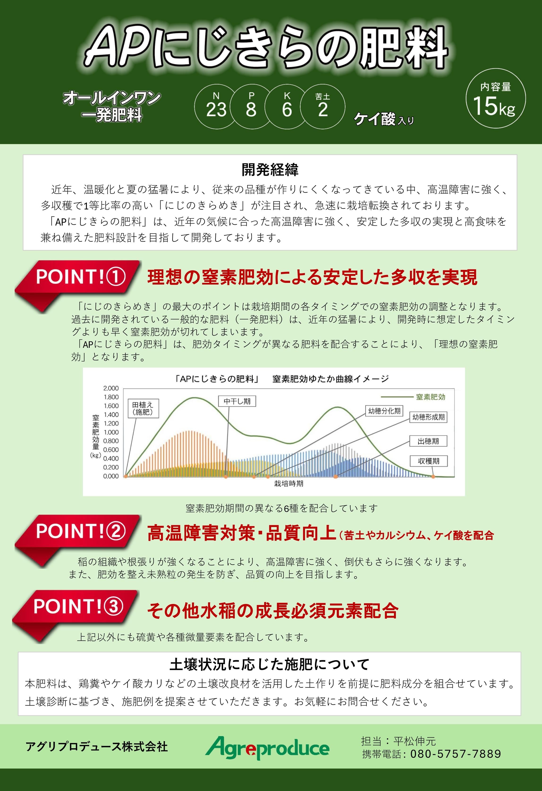 多収穫品種「にじのきらめき」の専用肥料(一発肥料)です。